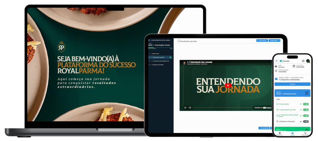 Plataforma completa de treinamento, com aulas estruturadas sobre toda a metodologia Royal Parma